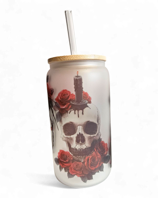 Glastumbler Rose Skull