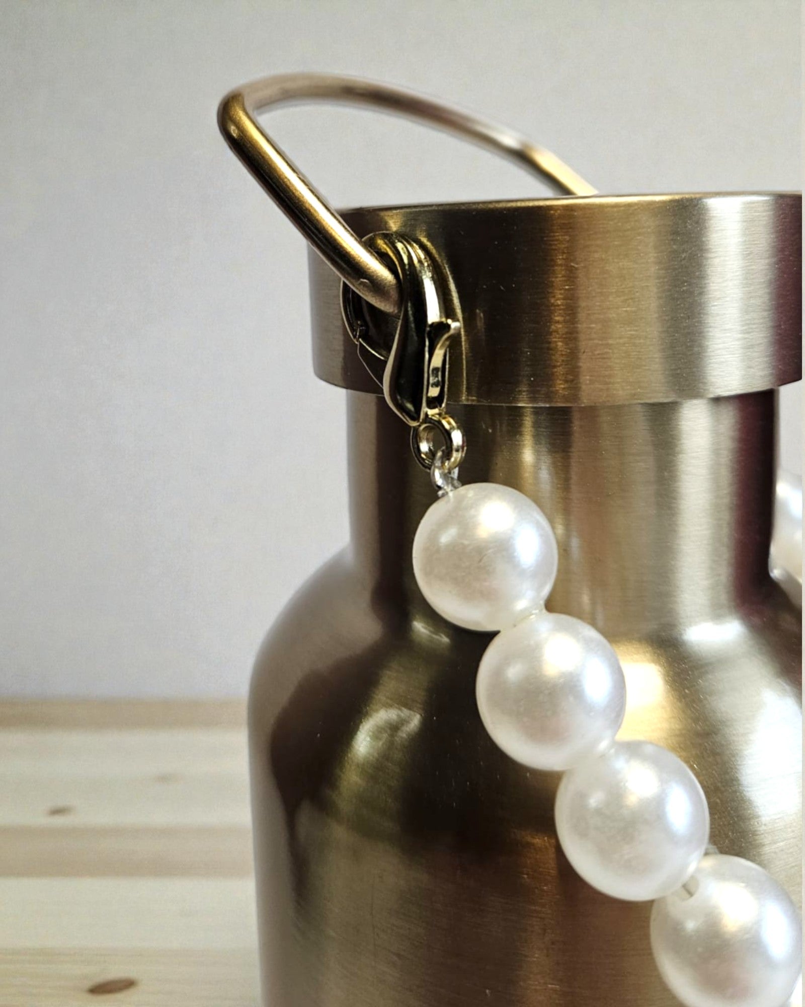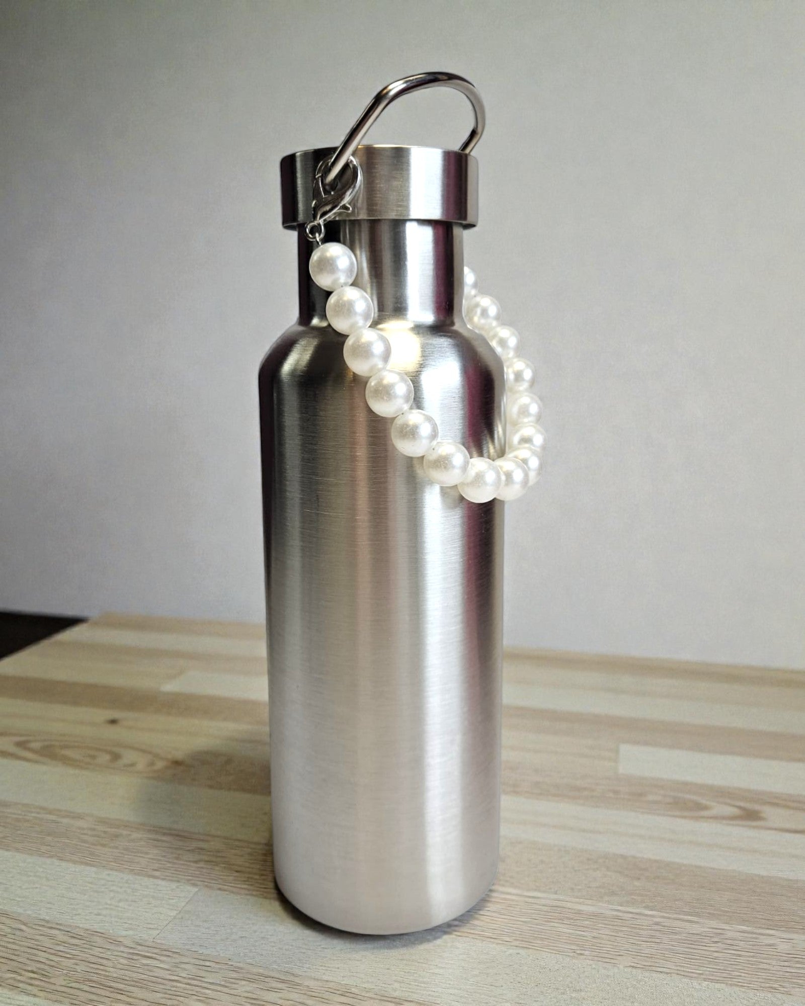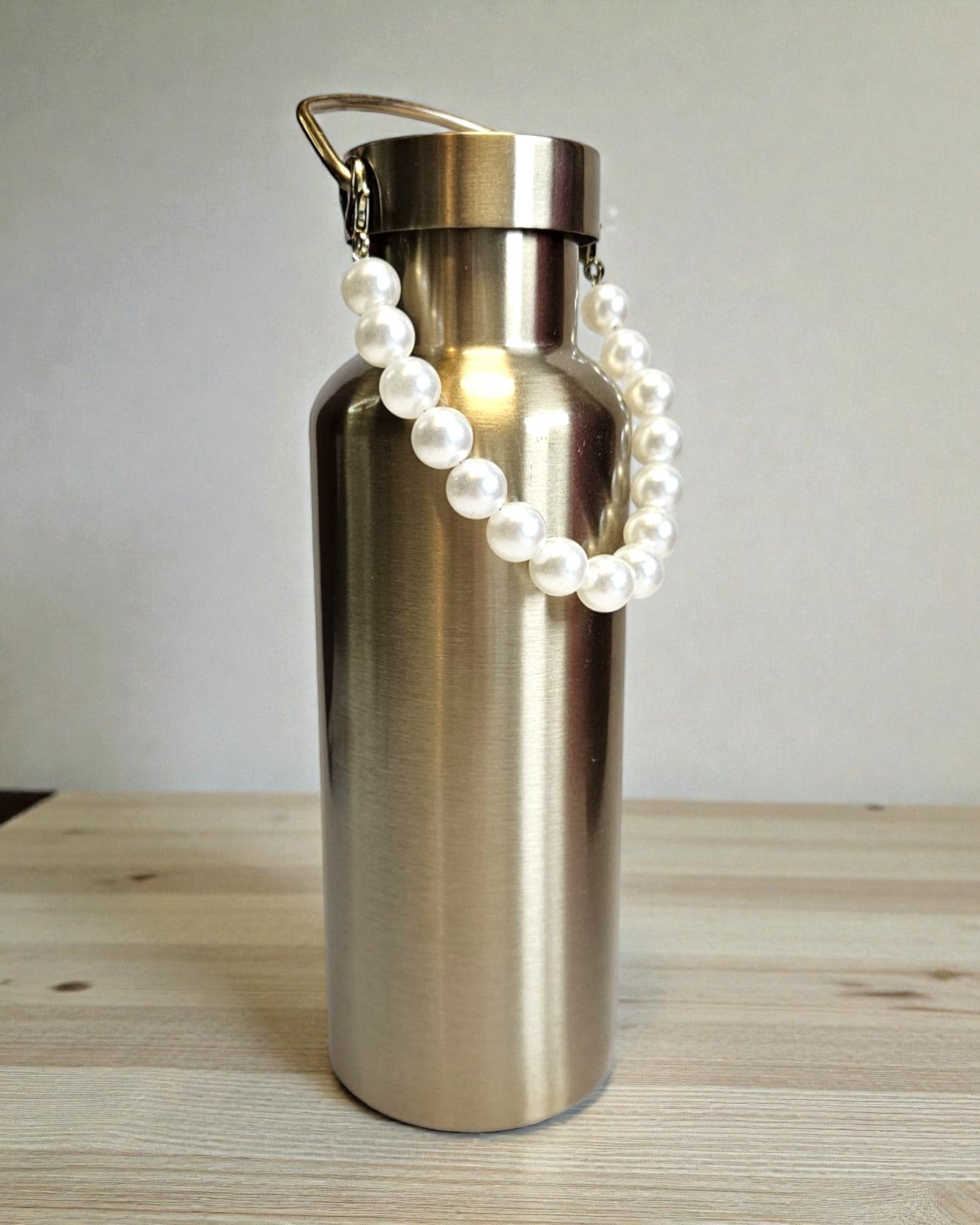 Metallicflaschen 500ml (gold, silber, grün) - mit kleiner abnehmbarer Perlenkette und Tragegriff