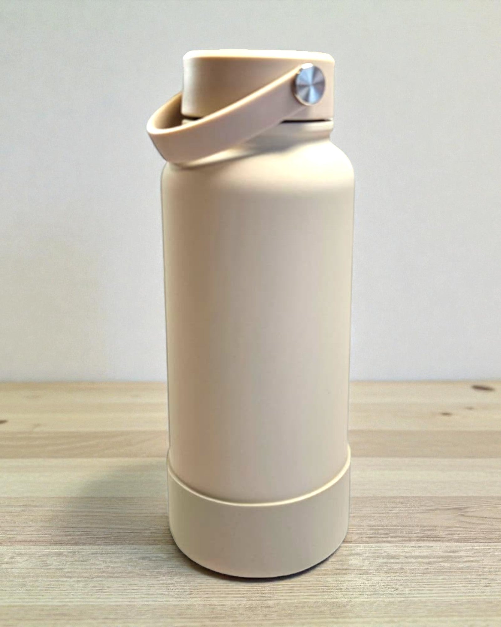 Edelstahlfalsche 1l creme - weiter Öffnung, Drehverschluss, Tragegriff aus Kunststoff und Silikonfuß